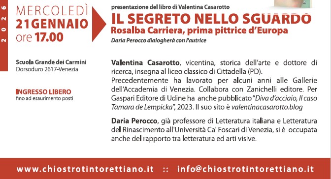 14 Gennaio 2026 IL SEGRETO NELLO SGUARDO : Rosalba Carriera Mercoledì 21 Gennaio ore 17,00 Scuola Grande dei Carmini