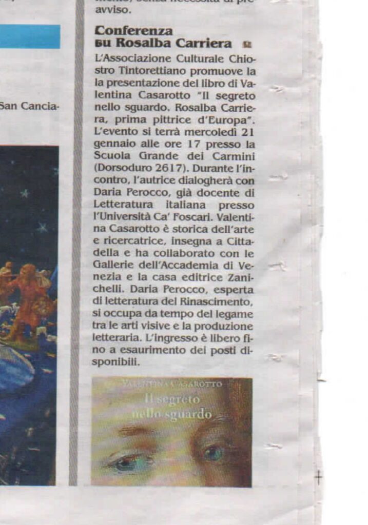 IL SEGRETO NELLO SGUARDO : Rosalba Carriera Mercoledì 21 Gennaio ore 17,00 Scuola Grande dei Carmini Tags: CARRIERAROSALBA